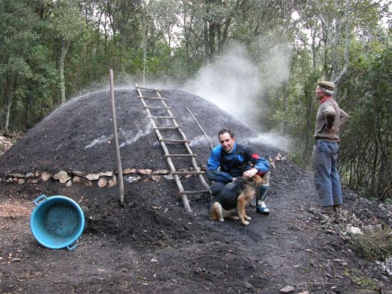 carbonaio ci invita a vedere le carbonaie e mentre scavalchiamo il famoso