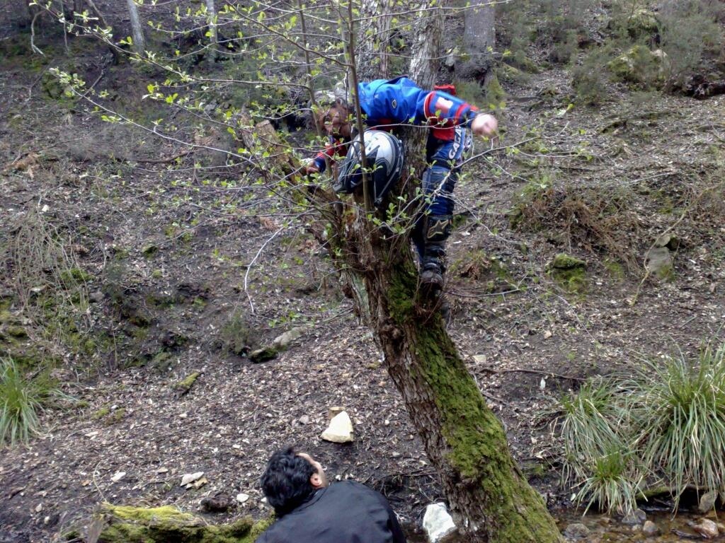 alberi, rovi e pietre fluviali troviamo la moto dello zio in terra, la marmitta